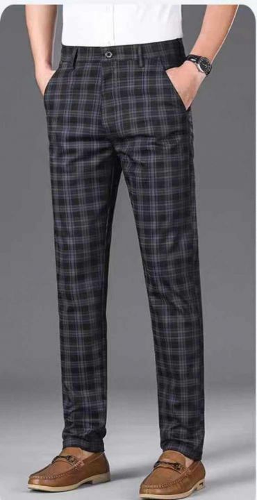 春季新款弹力男士格子直筒修身韩版潮流休闲西裤,独立...