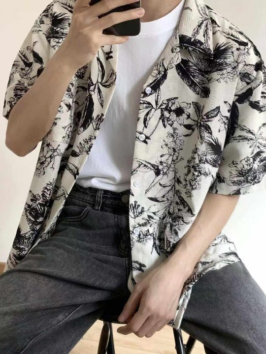 夏季新款男士度假风古巴领半袖休闲冰丝衬衣开衫,独立...