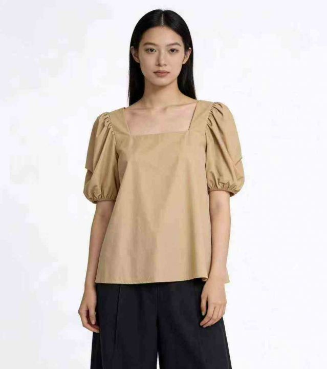 韩系甜美温柔风圆领泡泡袖上衣,整款两色,独立包装 1-2码(S- M)216件清...