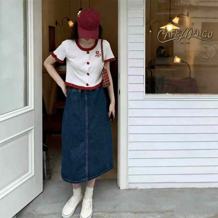 复古撞色刺绣木耳边短袖针织衫外搭开衫女夏季薄款修身...