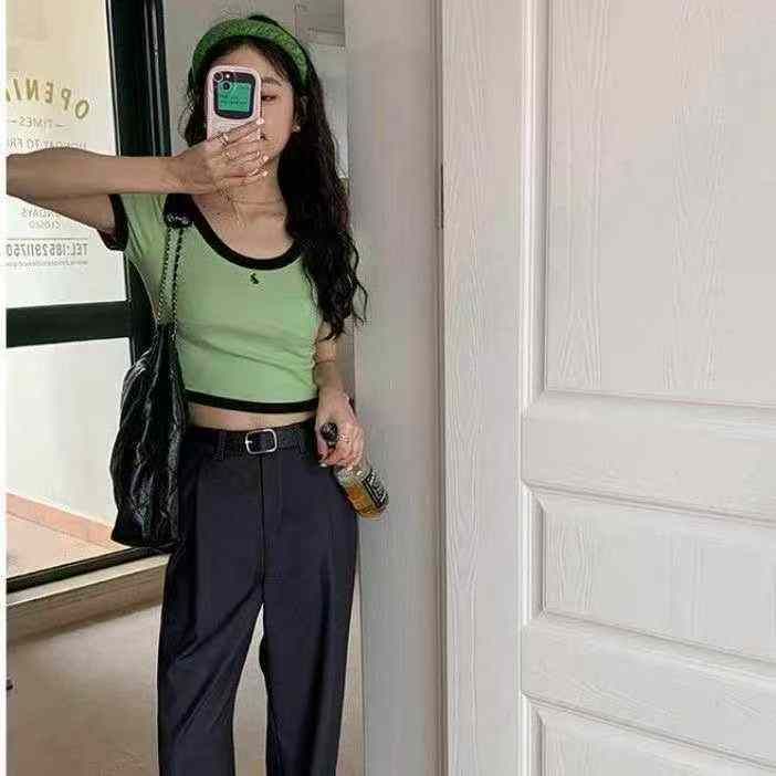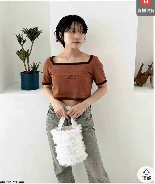 正肩短袖t恤女夏季修身显瘦甜辣u领设计感小众短款上衣,独立包装,220件,清6.8,分➕1