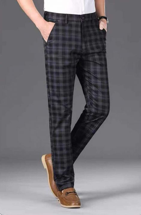 春季新款弹力男士格子直筒修身韩版潮流休闲西裤,独立...