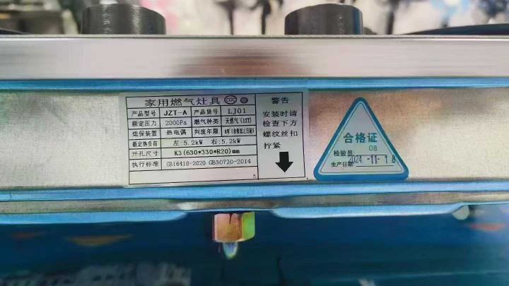 猛火双炉,天然气灶一级能效,带熄火保护面板尺寸,75*43㎝开孔,630*3...