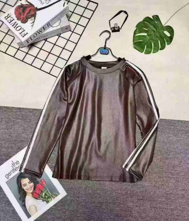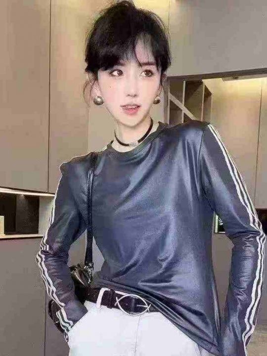 女款亮面圆领拼色长袖T整款4色 1-3码(S-L)460件 清...