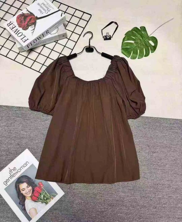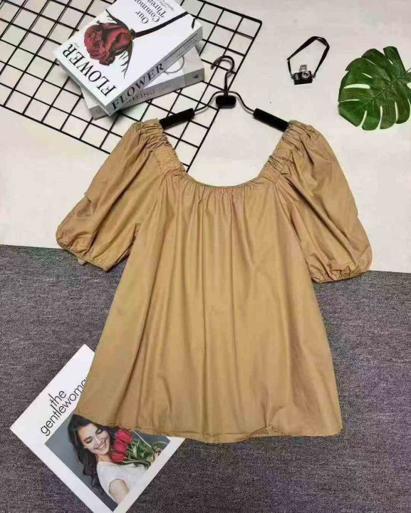 韩系甜美温柔风圆领泡泡袖上衣,整款两色,独立包装 1-2码(S- M)