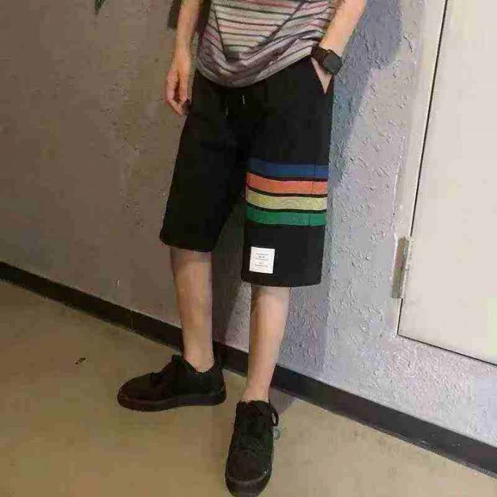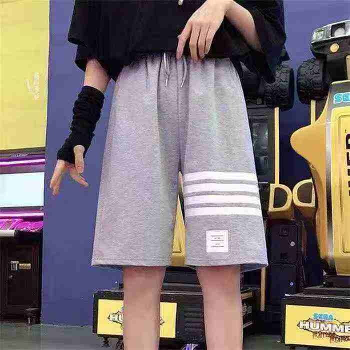 潮牌轻奢彩条四道杠宽松休闲男女款五分短裤·单款两个...