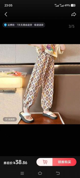 4.8元,中大童时尚印格冰丝裤,面料冰爽丝滑垂感有弹力,98件,2-7码,独立...