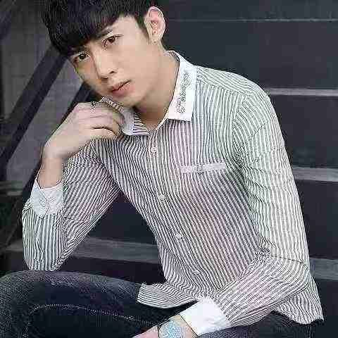 清7.8分货➕1条纹衬衫男长袖商务潮流秋季韩版修身帅气青年休闲白衬衣男士寸...