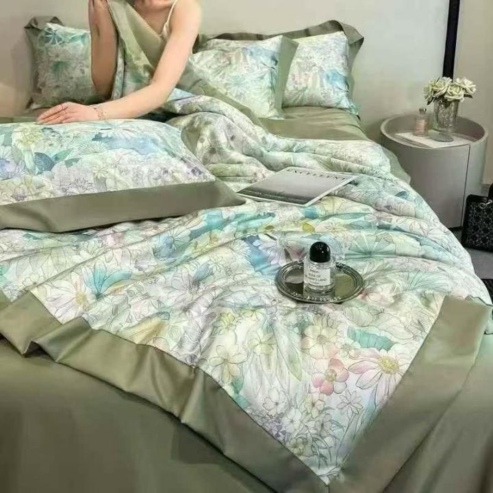 水洗天丝拼角工艺款夏被,整张烫光棉独立手拉绳包装1.5米,1.8米,2米 1000...