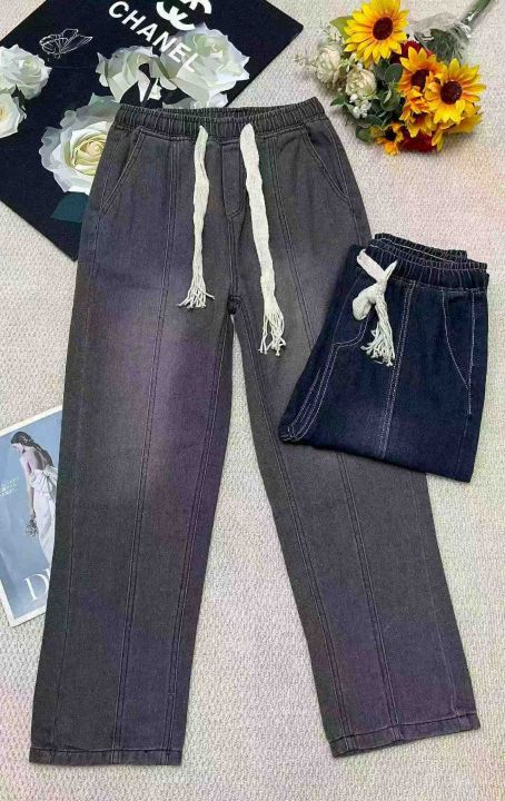 春季新款网红复古洗水棉松紧腰牛仔长裤,独立包装带吊...