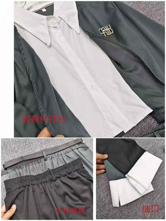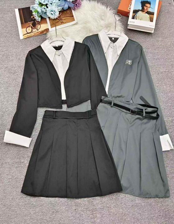 设计感气质减龄假两件套西服学院风百褶裙短裙套装,独立包装,整款黑色和灰色,大部分有搭配腰带胸针,码数1/2/3/4/6,数量219套,不分货