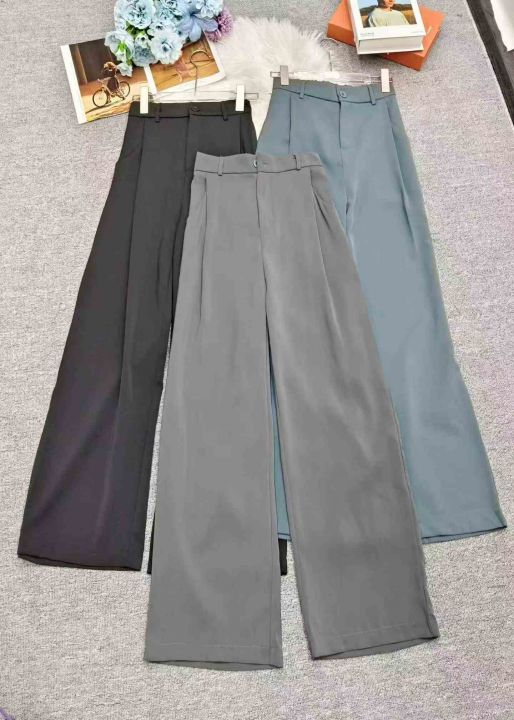 高品质气质高腰垂感直筒阔腿西装裤,独立包装原吊牌,面料手感垂感超好,可入实体店,L码裤长103厘米,整款三色,码数S~XXL(S码超少),数量640条,分货加1