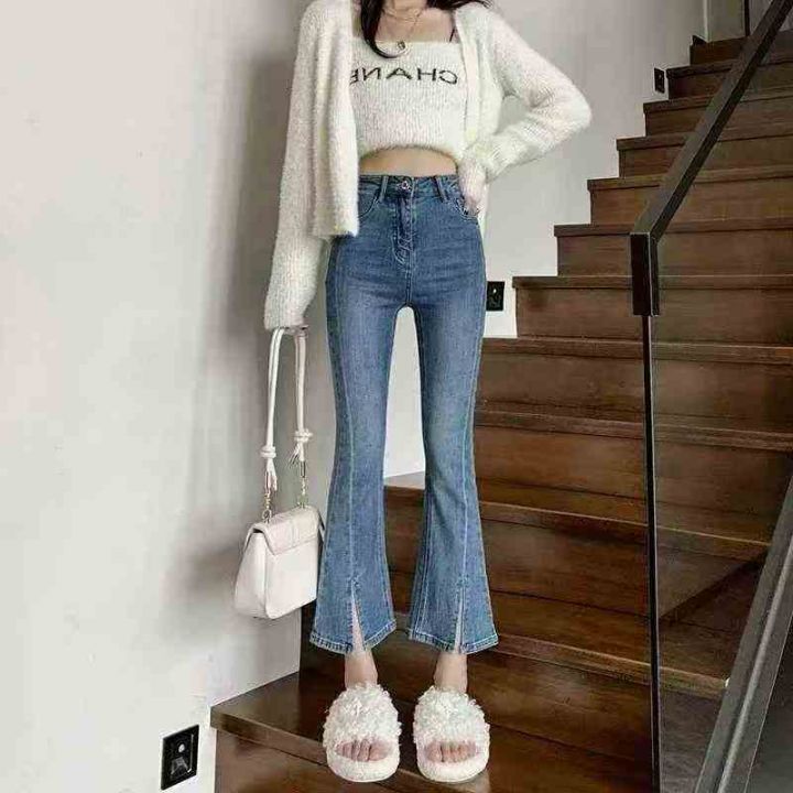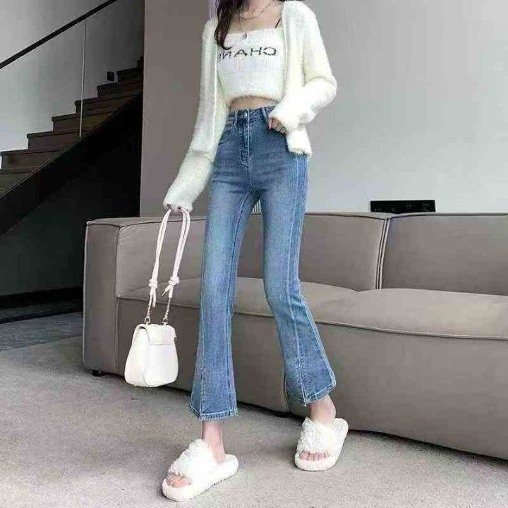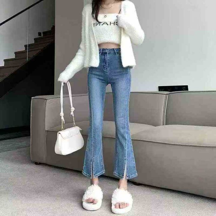 复古女士开衩高弹八分九分牛仔裤 323件,全清11.8元,分货12.8元正品独立包装 货品干净,码数:25、26、27(S到L),复古开叉微喇牛仔裤女春夏2026年新款设计感小众高腰显瘦八分裤子