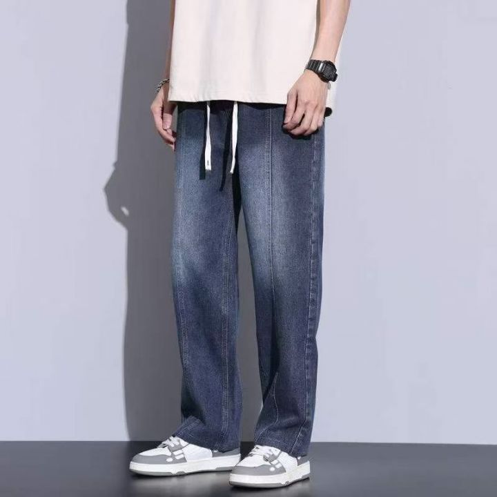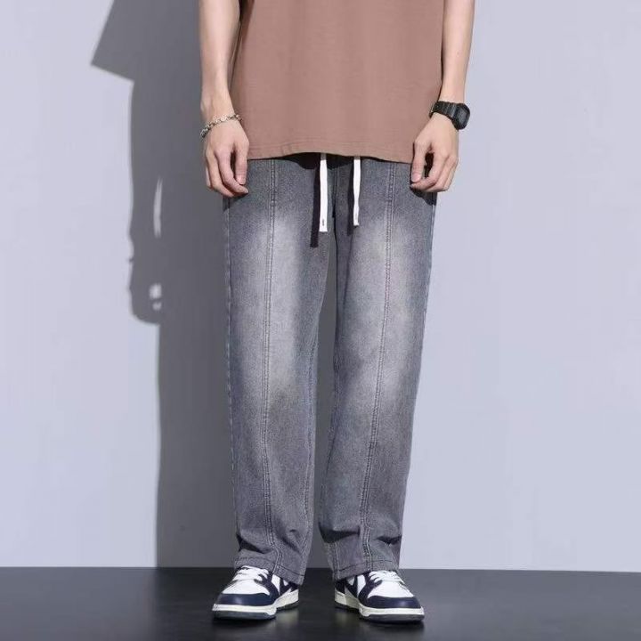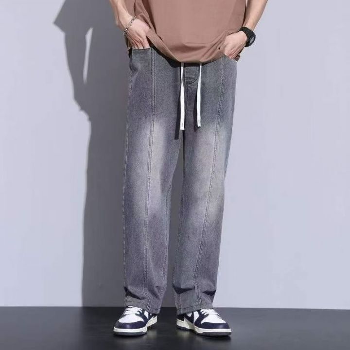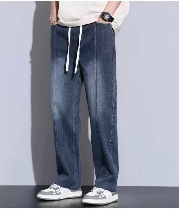 春季新款网红复古洗水棉松紧腰牛仔长裤,独立包装带吊...