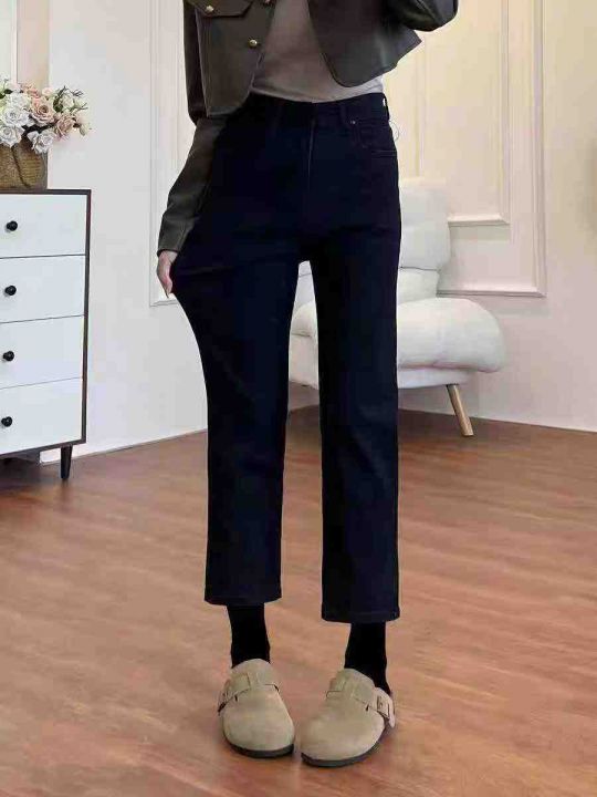 186条 秋季直筒窄版牛仔裤梨形身材高腰弹力显瘦九分...