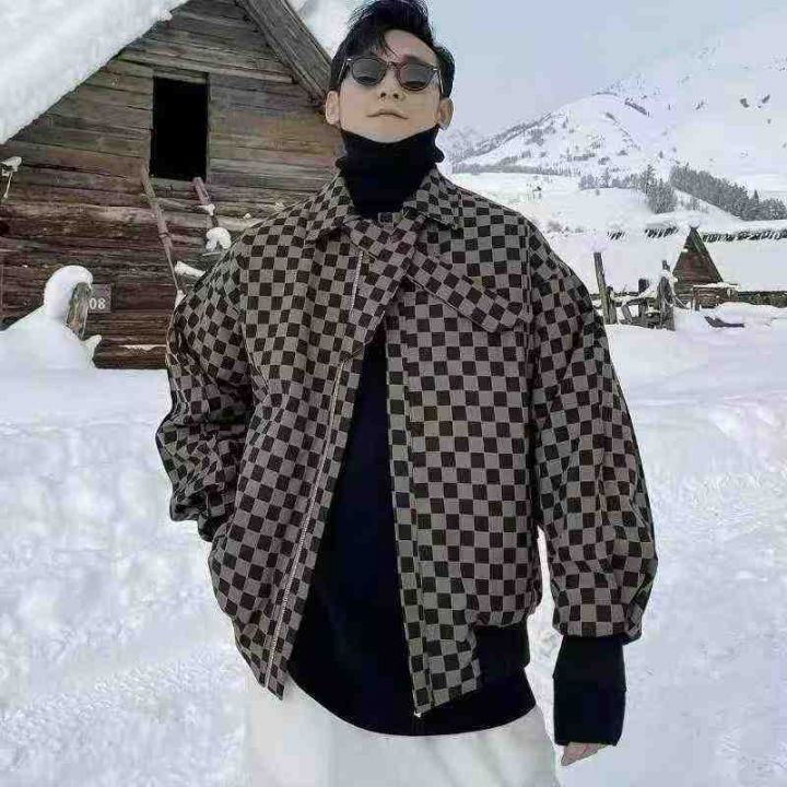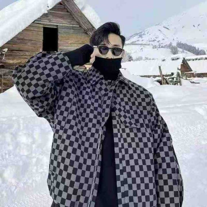全清12.8棋盘格外套男春秋季bf潮牌宽松炸街上衣日系复...