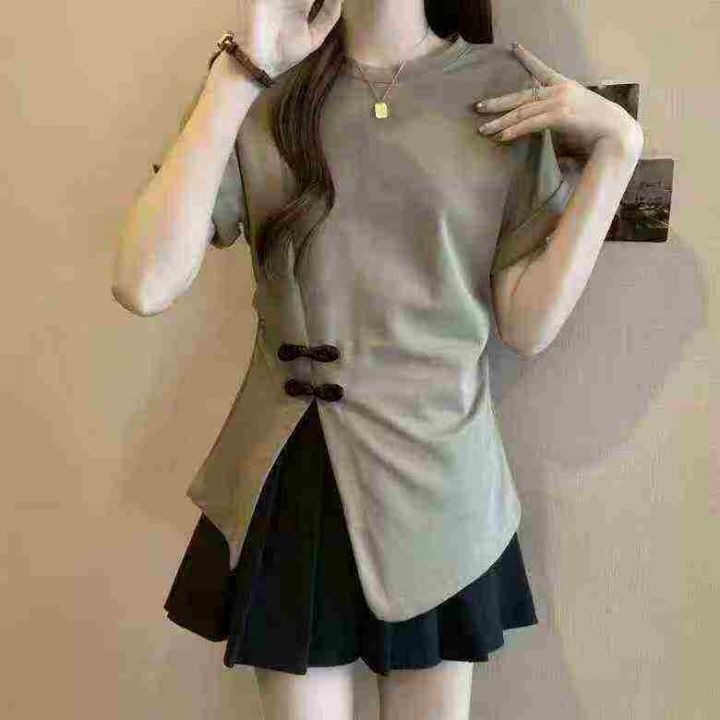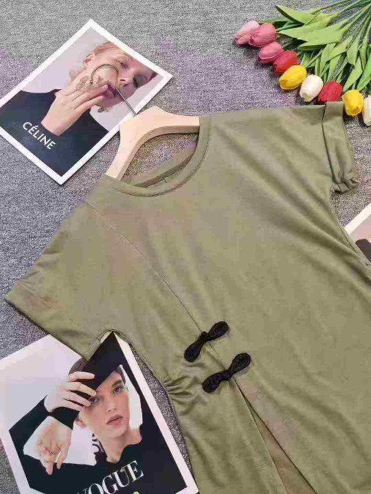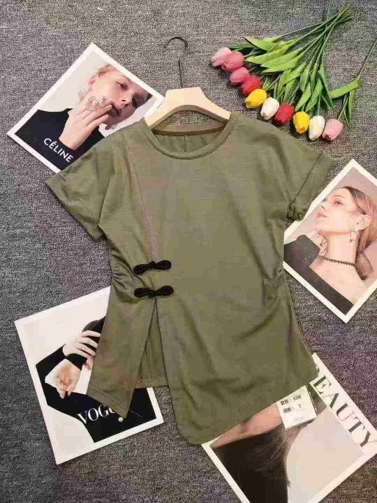复古盘扣不规则设计感开叉显瘦上衣,[爱心]60件左右,码数S-L,穿80斤-130斤,万佳档口货,原包装️无瑕疵,实体店品质