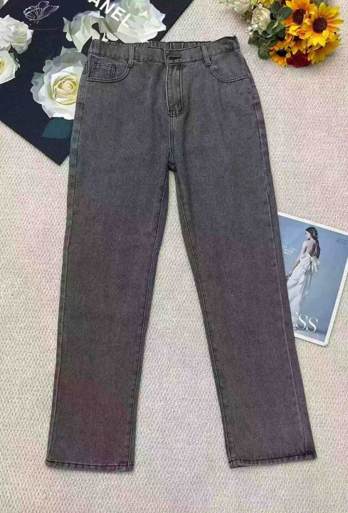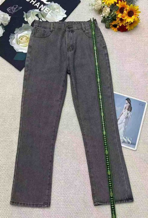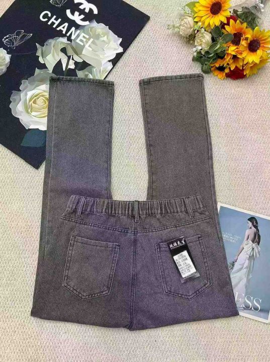 春夏季新款网红复古洗水棉半松紧腰牛仔长裤,独立包装...