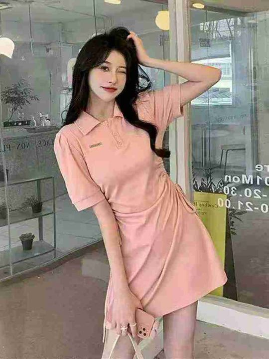 Polo领短袖连衣裙97件7.8,面料舒适有弹力,抽绳收腰...
