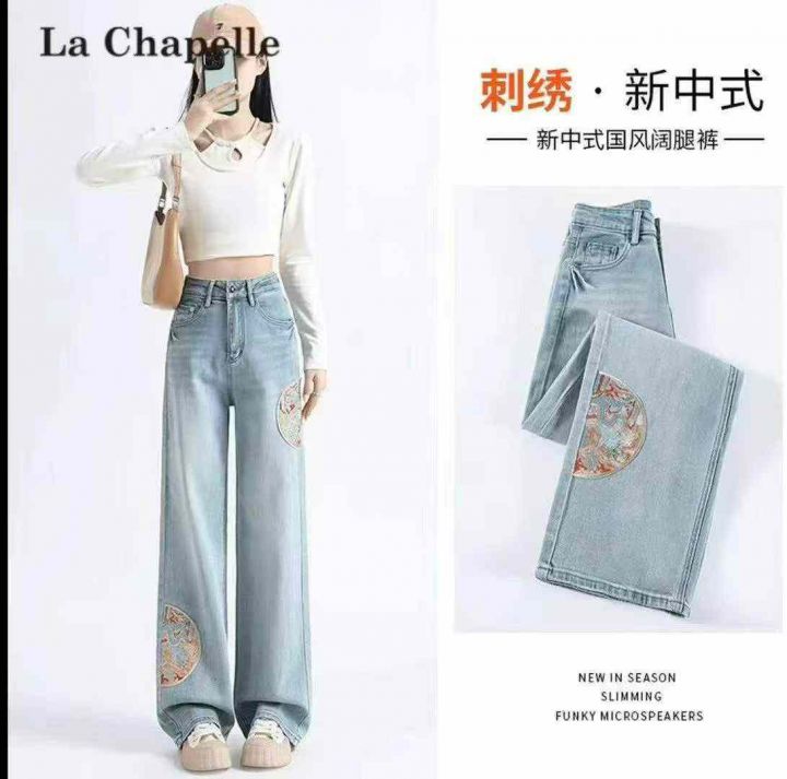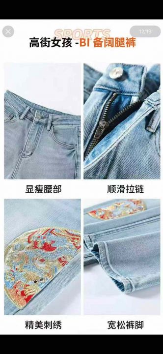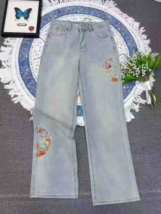 精美刺绣阔腿牛仔裤