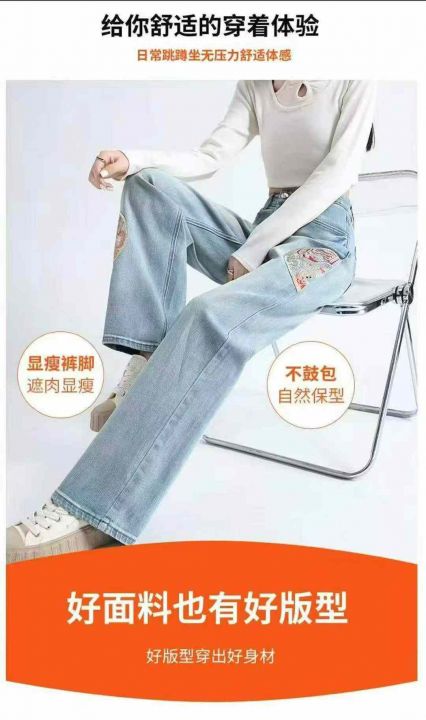 精美刺绣阔腿牛仔裤