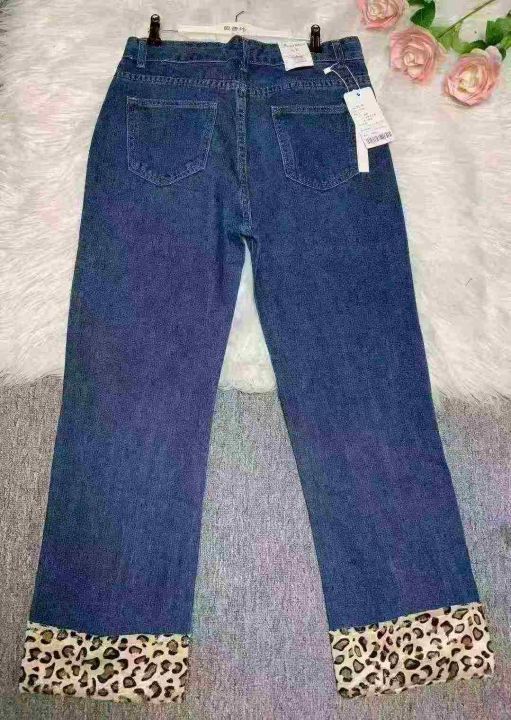 高腰牛仔直筒裤显瘦小个子加绒深蓝美式豹纹直筒烟管裤180件,独立包装带吊牌,尺码S~3XL,全清福利价8.8元