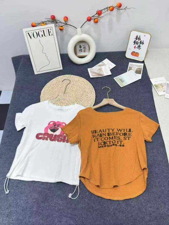 网红辣妹纯欲风净色抽绳印花短袖长袖女T夏季春秋修身显瘦上衣美式ins潮,品质,小整微杂,数量528件,码数m-2xl,独立包装,全清6.8元,分货7.5元