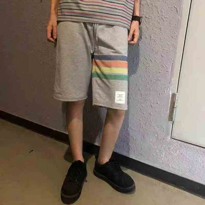 潮牌轻奢彩条四道杠宽松休闲男女款五分短裤·单款两个...