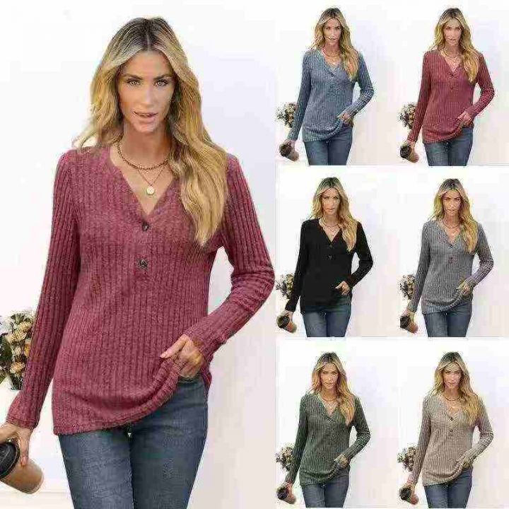 ① 慵懒风v领女款长袖宽松上衣!独立包装,整款多色,码数L-4Xl,数量150件...