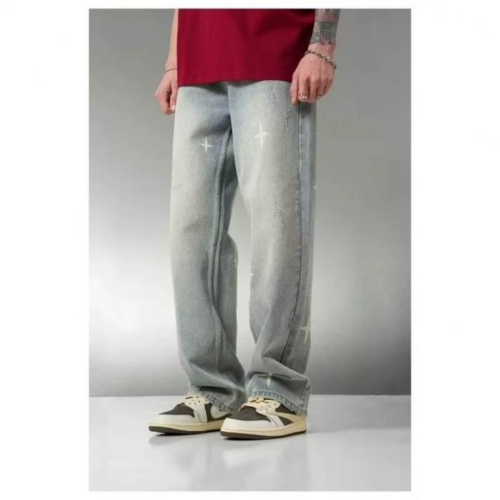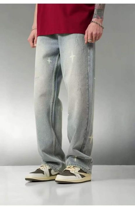 春季新款男士网红复古洗水棉潮牌设计款牛仔长裤,独立...