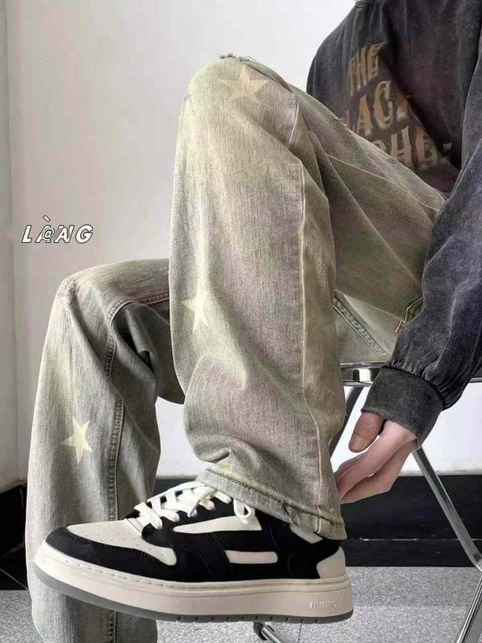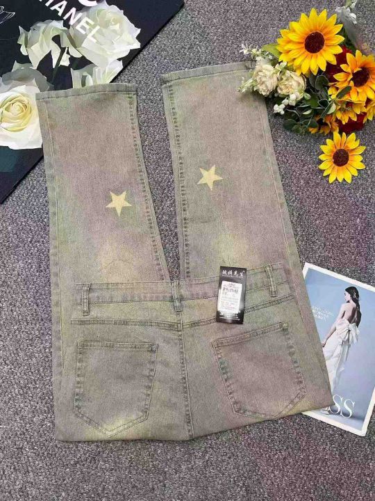 春季新款网红复古洗水棉做旧星星设计款弹力男士牛仔长...