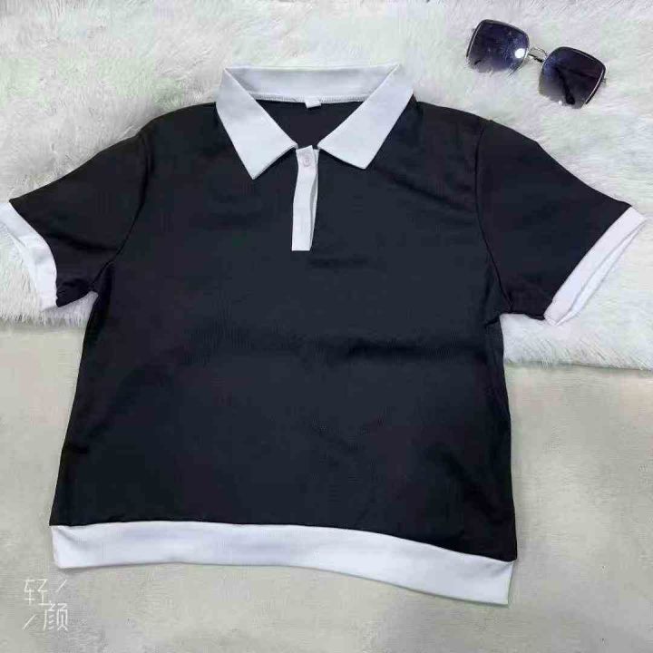 正肩冰丝短袖女T恤女polo上衣,黑白两色,码数s码到L...