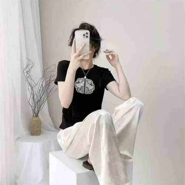 辣妹小众设计国风刺绣纯棉短袖T恤·单款两个色3个码独...