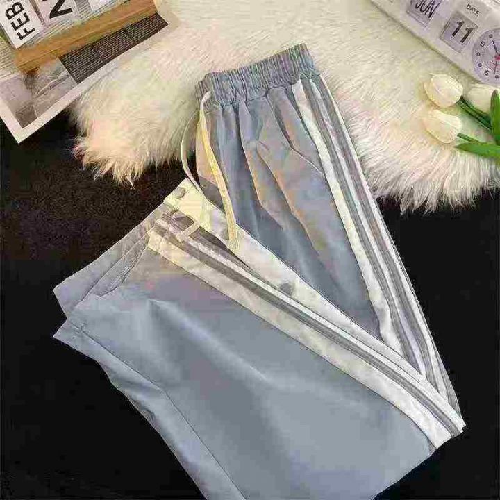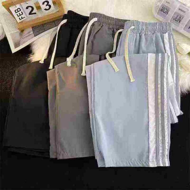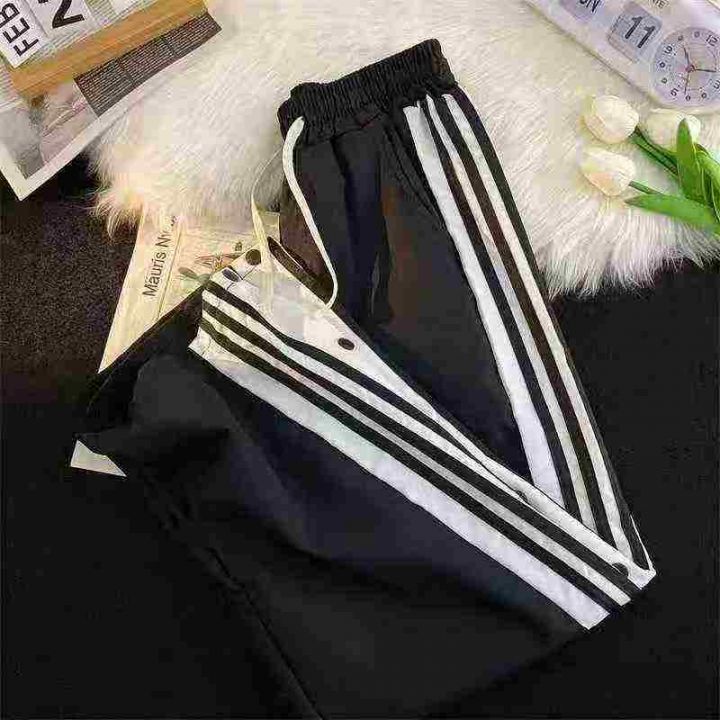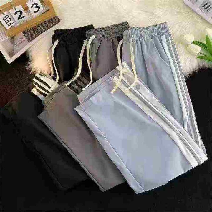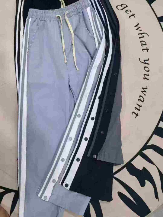 360件左右男款春夏侧边条纹排扣抽绳运动休闲裤,整款3色,码M-2XL,蓝色比例多,独立包装
