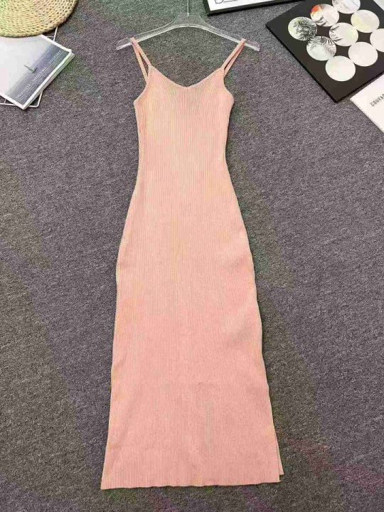 ☕️性感纯欲风针织吊带连衣裙女春夏辣妹紧身显瘦鱼尾裙143件全清8.8元,黑灰粉3个色,码数M L,独立包装[庆祝][庆祝][庆祝]高弹力曲珠吊带冰丝连衣裙