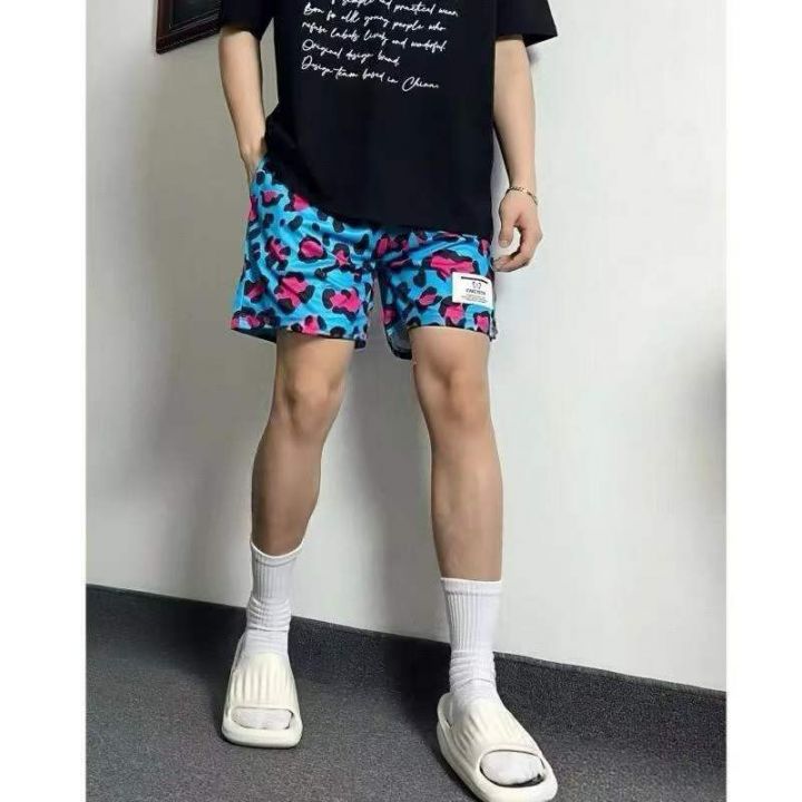 全清5.8分货+0.5男士夏季薄款透气运动美式网眼短裤时尚沙滩泳裤豹纹四分不...