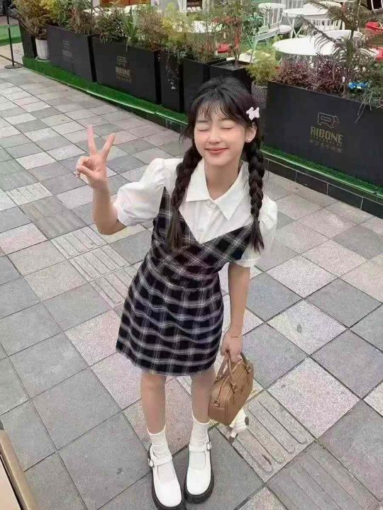 25甜酷设计感拉满的小众T恤✨侧边抽绳自由调节,格纹挂脖+荷叶摆拼接,字母...