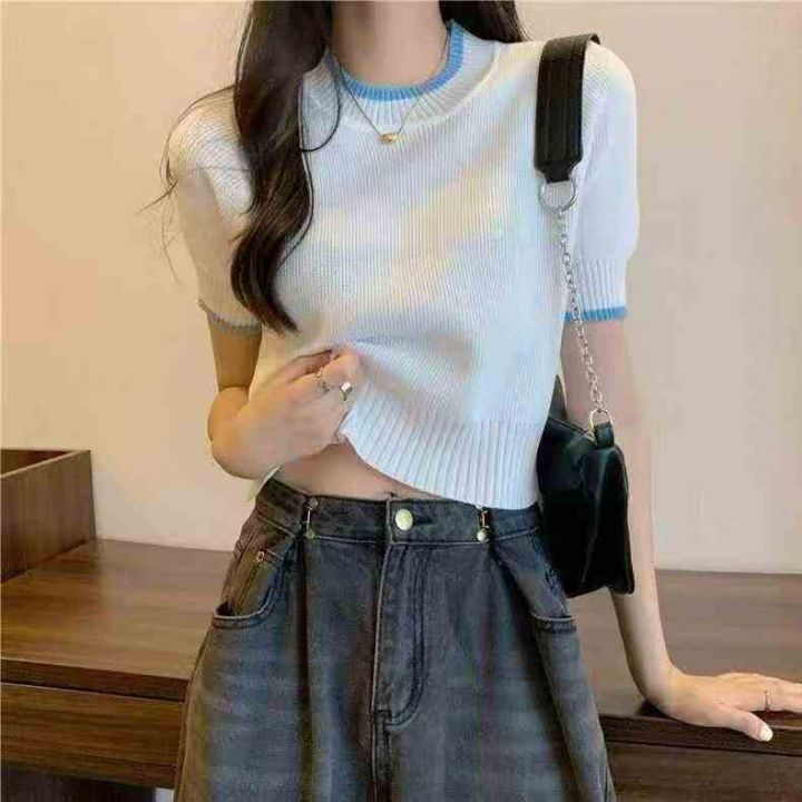 洋气甜辣撞色针织短款T恤短袖·单款单色40件独立包装...