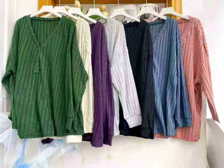 ① 慵懒风v领女款长袖宽松上衣!独立包装,整款多色,...
