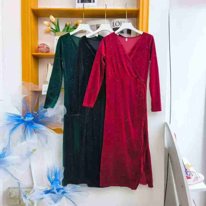 ① 金丝绒满天星气质收腰显瘦开叉连衣长裙!独立包装,整款三色,码数S-L,数量120件左右,全清8.8元