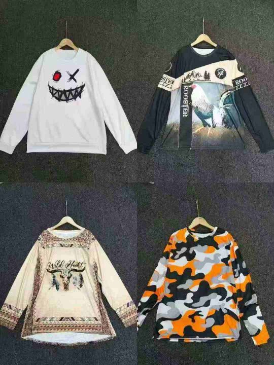 外贸3D印花长袖男女款卫衣T恤,大版宽松型后领包边 独立包装 码数S-5XL,数量16000件 全清3.5 分货加0.5