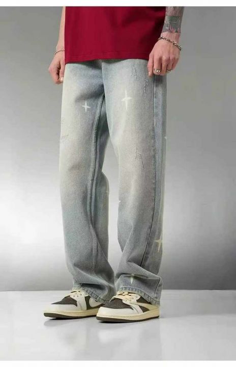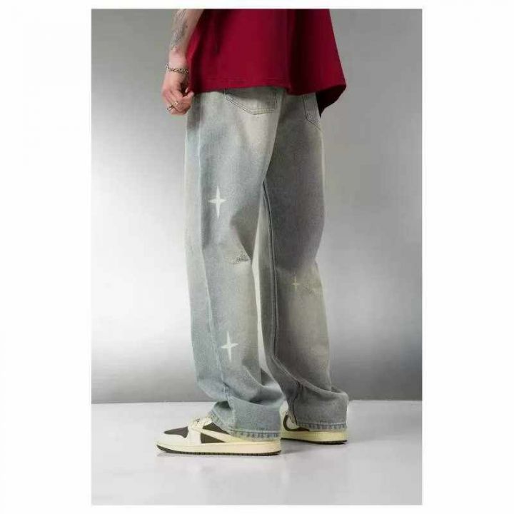 春季新款男士网红复古洗水棉潮牌设计款牛仔长裤,独立...