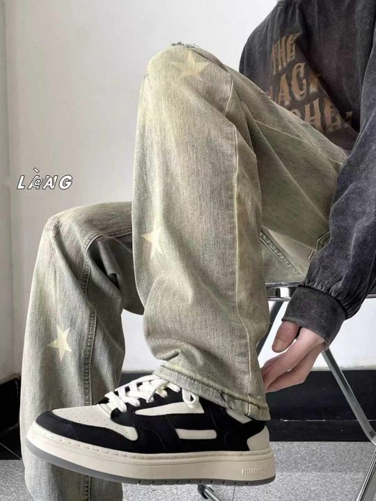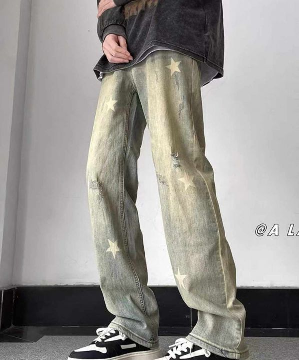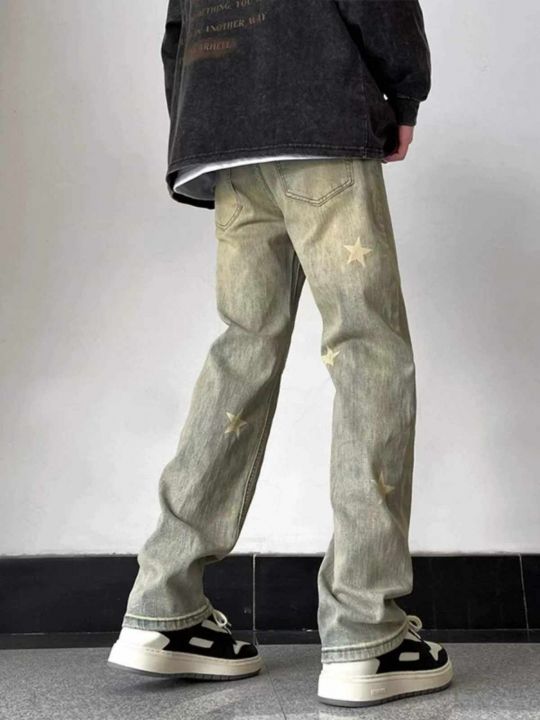 春季新款网红复古洗水棉做旧星星设计款弹力男士牛仔长...