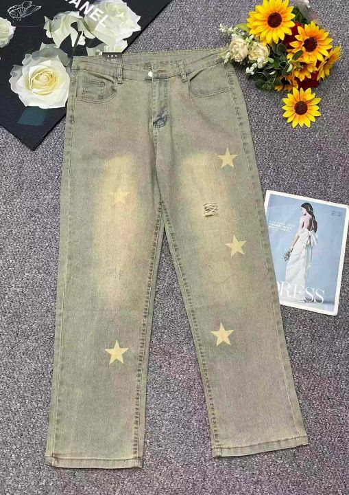春季新款网红复古洗水棉做旧星星设计款弹力男士牛仔长裤,独立包装带腰卡,码数S- 3XL码, 330件,全清9.9元超低价秒杀!分货加一!