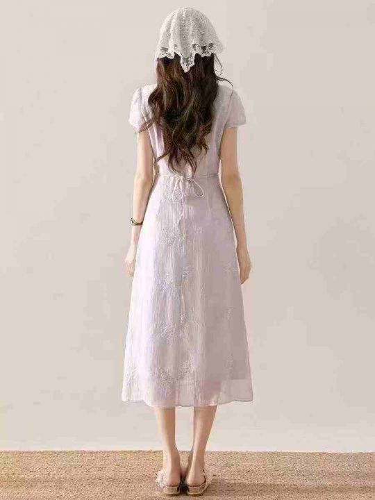 4100件新款夏季收腰修身长款连衣裙,工艺绣花,单款单色,独立包装,码数M-L