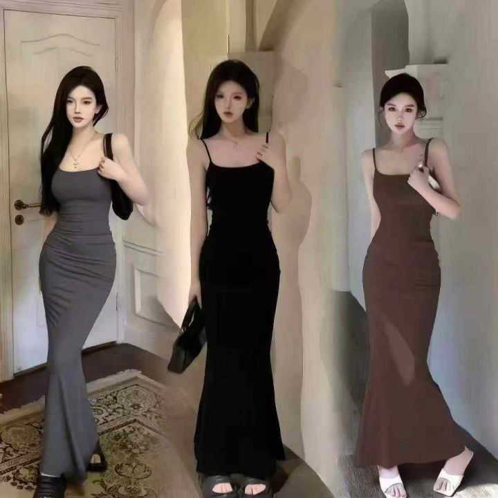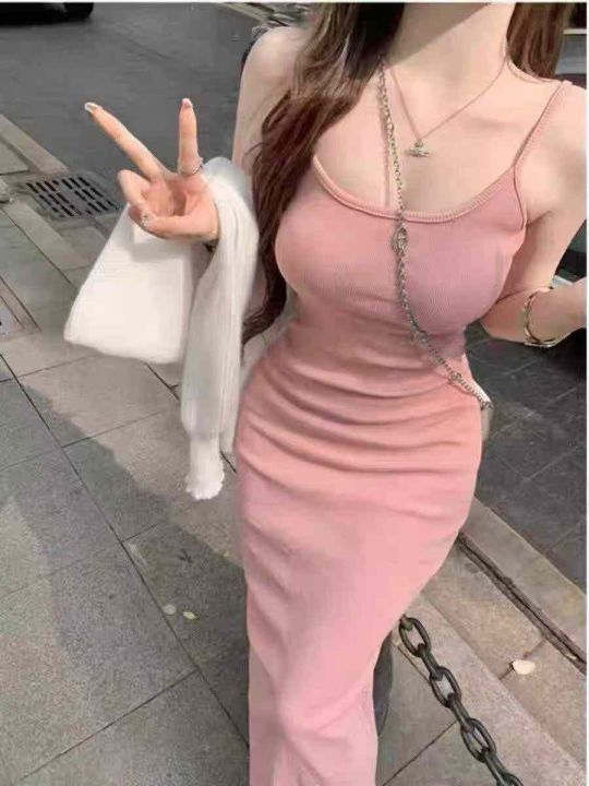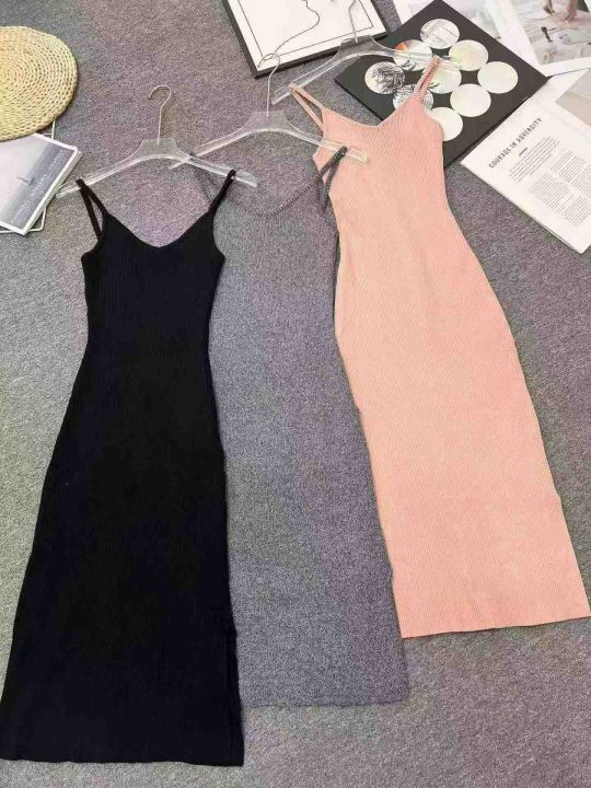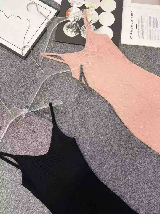 ☕️性感纯欲风针织吊带连衣裙女春夏辣妹紧身显瘦鱼尾裙143件全清8.8元,黑灰粉3个色,码数M L,独立包装[庆祝][庆祝][庆祝]高弹力曲珠吊带冰丝连衣裙