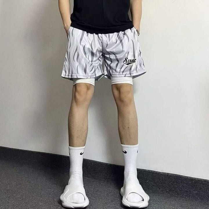 男士美式潮牌运动篮球网眼短裤不过膝宽松休闲透气假两件四分裤,独立包装,1150件,尺码S-3XL