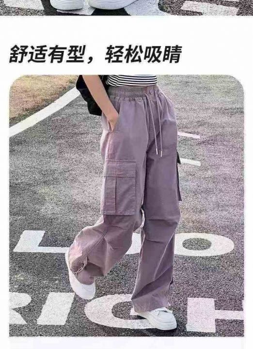 女童工装裤春秋款百搭中大童宽松阔腿裤,整款四色,2163件 独立包装,货品干净,码数:120-170码,货号327#53