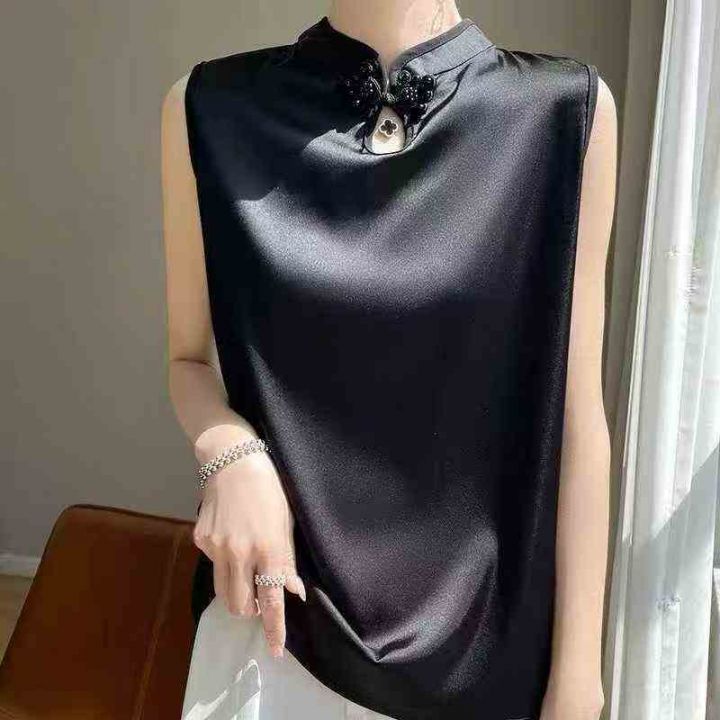新中式立领盘扣无袖吊带背心女内防真丝吊带上衣,数量:354件 码数:1-4码,大货黑色为主 独立包装(货号331#66)