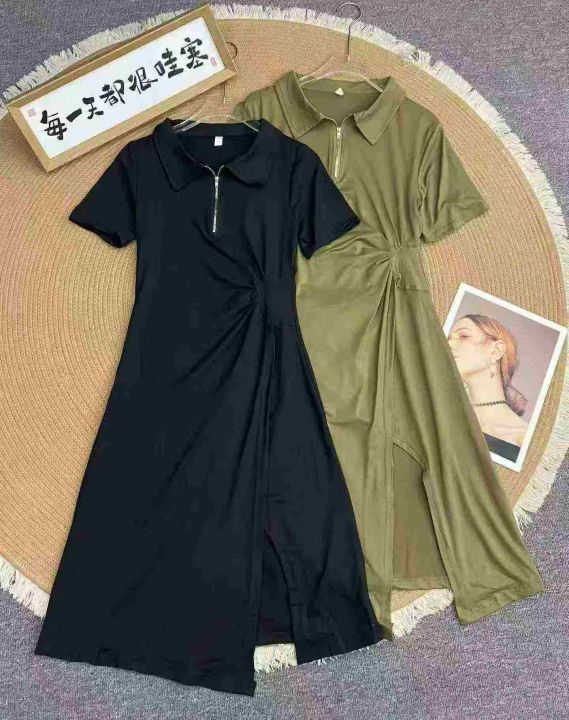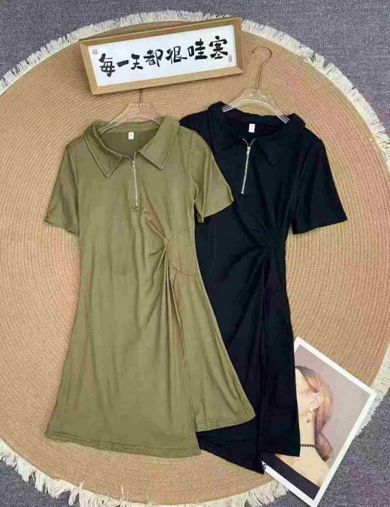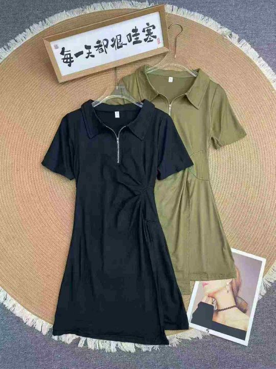 韩版POLO领连衣裙479件7.9,面料有弹力,半拉链设计,...